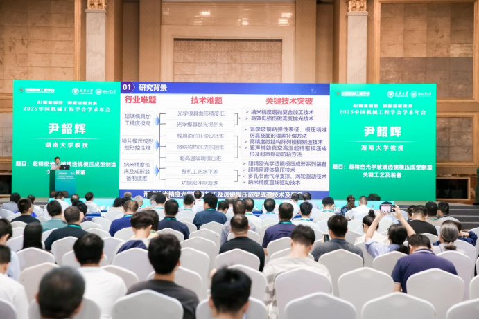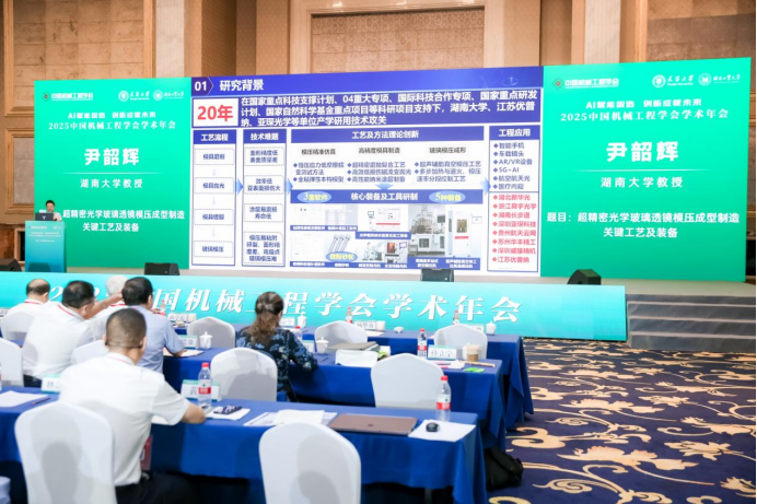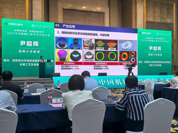 我院尹韶辉教授受邀出席大会,并于9月13日在年会主旨报告环节做大会特邀报告。尹教授以“超精密光学玻璃透镜模压成形制造关键技术及装备”为题,系统介绍了我团队在该领域技术创新和产业应用方面取得的重大突破。